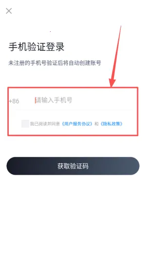 1、打开软件后使用手机号验证登录,未注册的手机会自动创建新账号,记得先勾选同意用户协议和隐私政策再获取验证码。