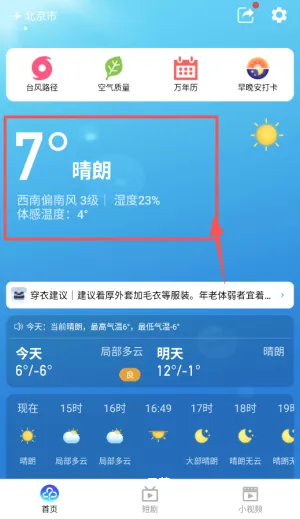 2、首页下滑可查看24小时内的精细预报涵盖温度降水风速等数据方便您规划短期行程。