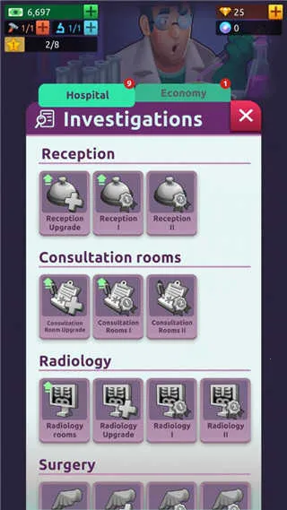 4、提供数十种不同科室供玩家解锁和升级,每种科室都有独特的治疗项目和升级路线,随机生成的病人和病症,确保游戏过程充满新鲜感和挑战性。