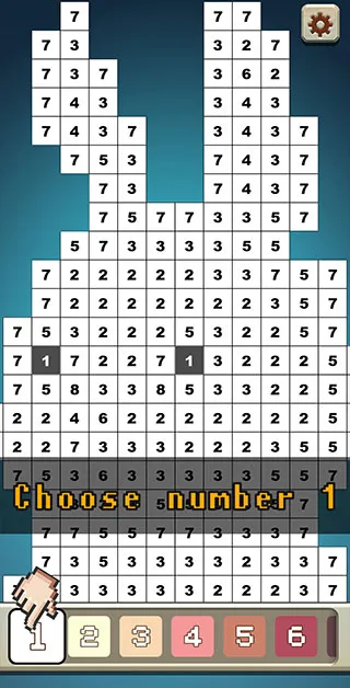 4、对于大面积的涂色,可以先点击颜色,再长按点击数字格子,滑动范围,就可以快速给滑到的区域上色。