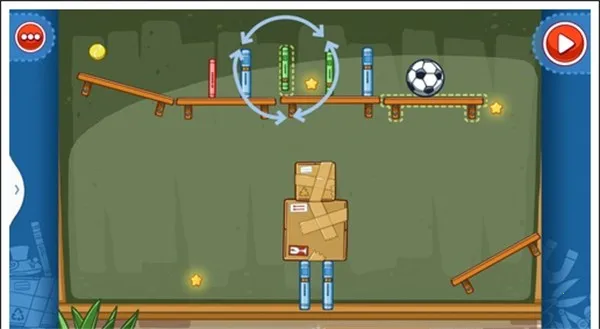 我们只需要将两个木箱重叠放在中间空白处,就可以让球飞过去,获得星星。
