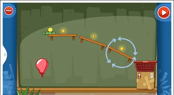 我们只需要将三个木板凳各自斜放在星星上头就可以让气球自由飞上去,获得星星。